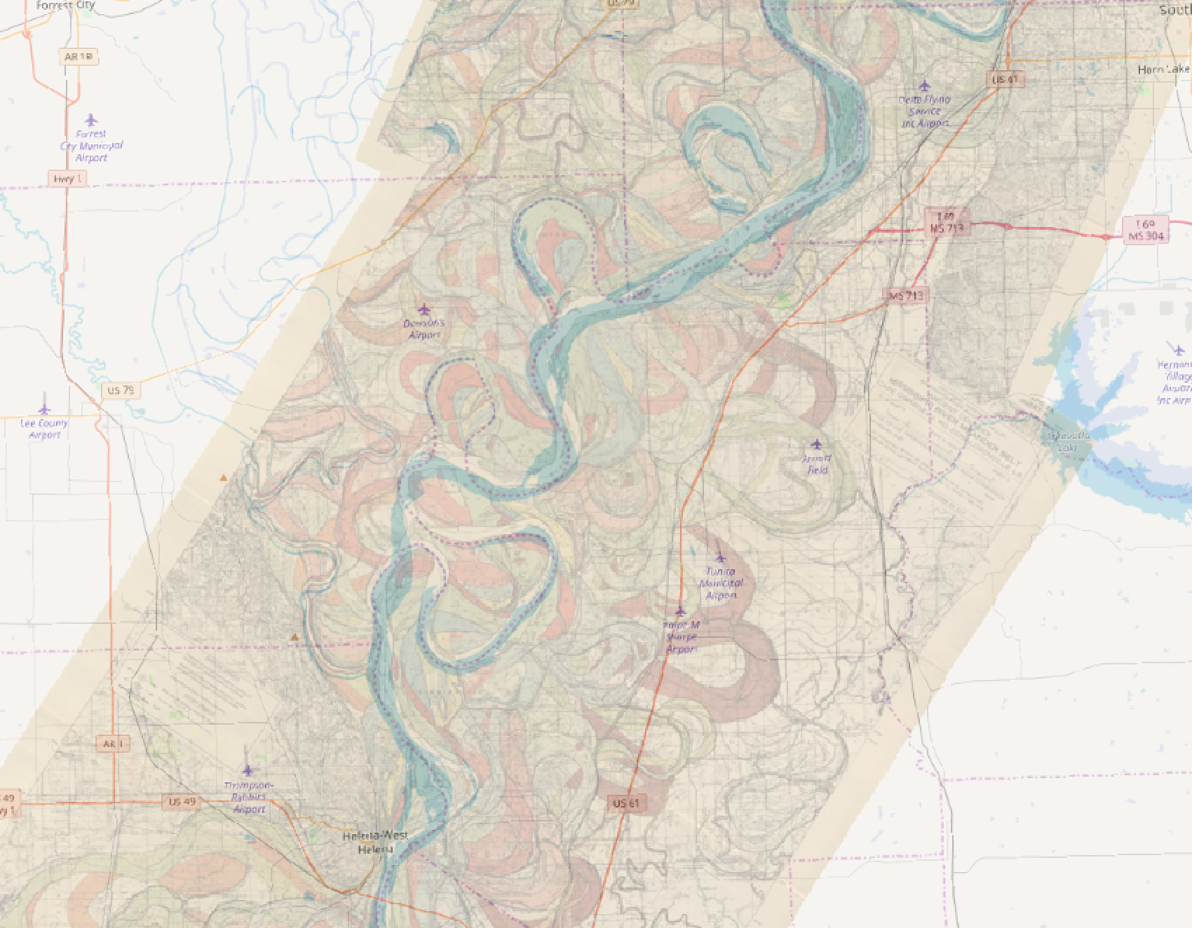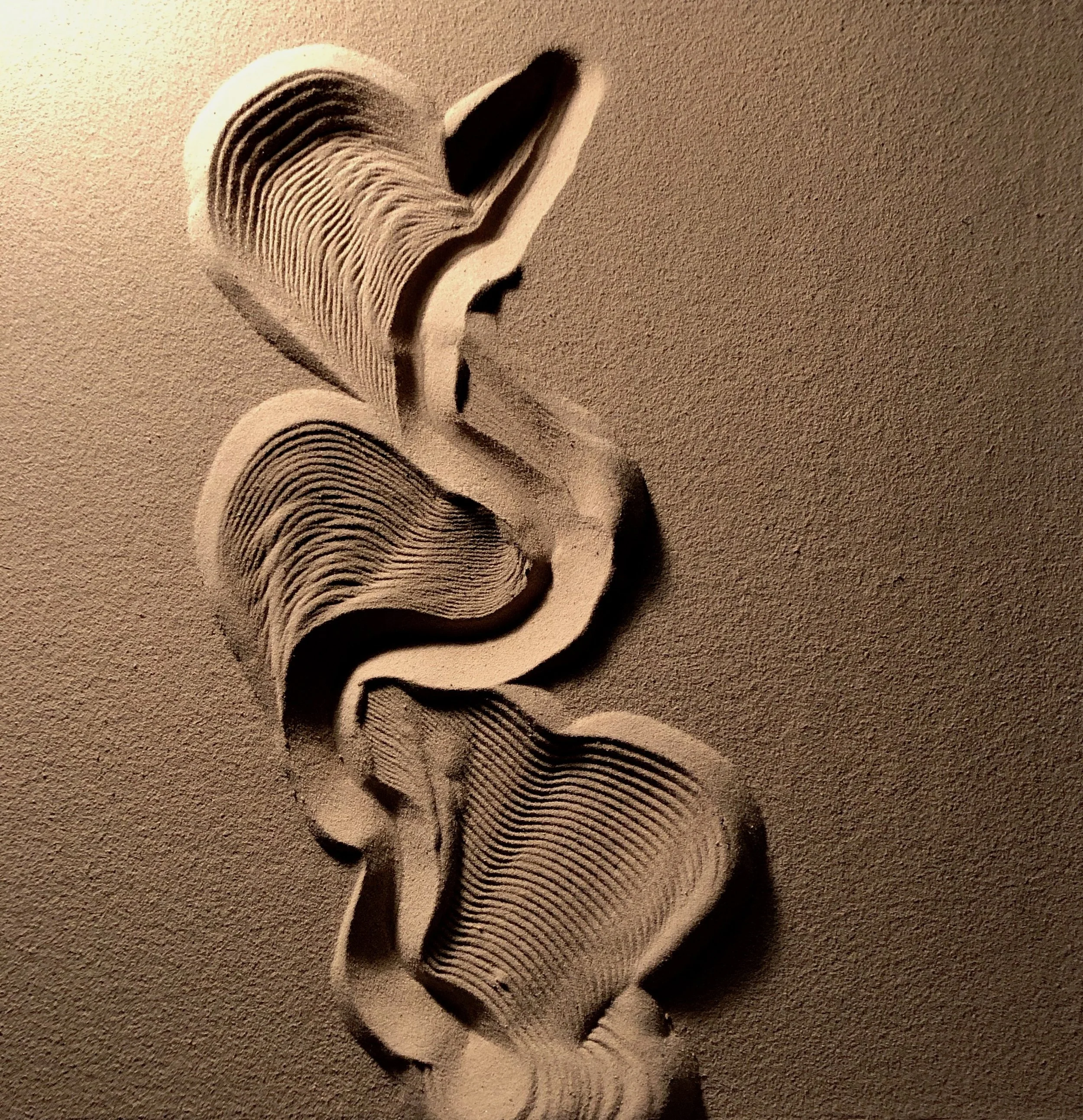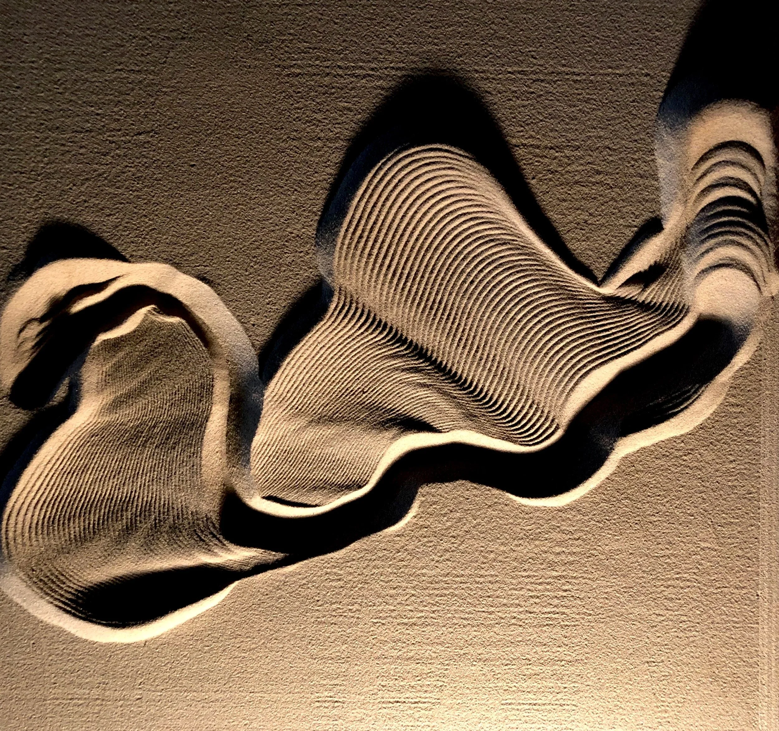This project explores the relationship between natural river morphology and humans’ geopolitical and infrastructural influence on the Mississippi River. Referencing a collection of historical maps created by Harold Fisk at the Army Corps of Engineers and georeferencing these physical maps into GIS, vectors have been coded into robotic sand patterning motions that tell the story of river geomorphology and the commitment of humans to interrupt these cycles. Stories emerge from these forms, first bringing in a viewer through the form itself, and then exposing the underlying environmental information. This creates a dialog between nature and humans’ connection to it, exposing our tendency to try and overpower it rather than create infrastructure and political policies around it.